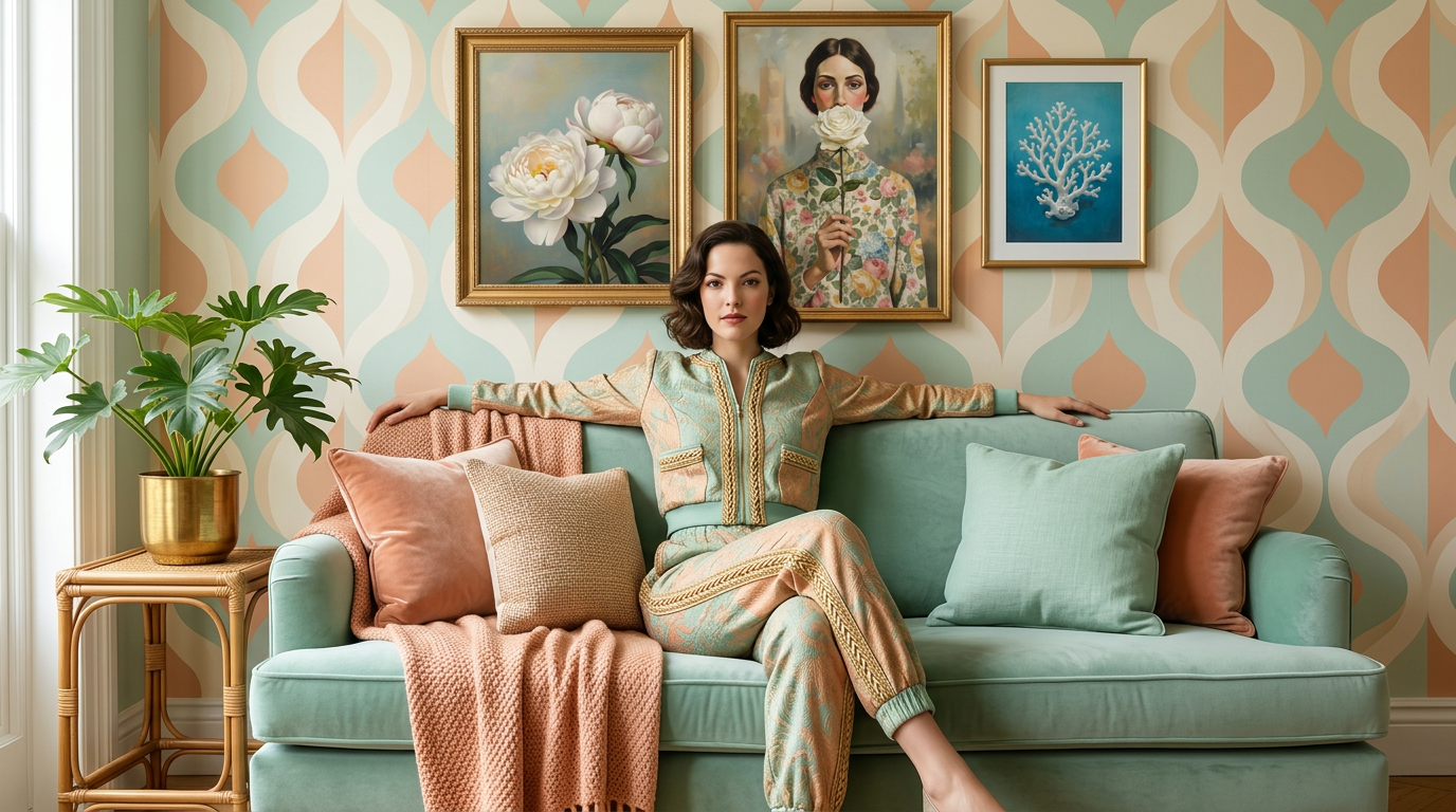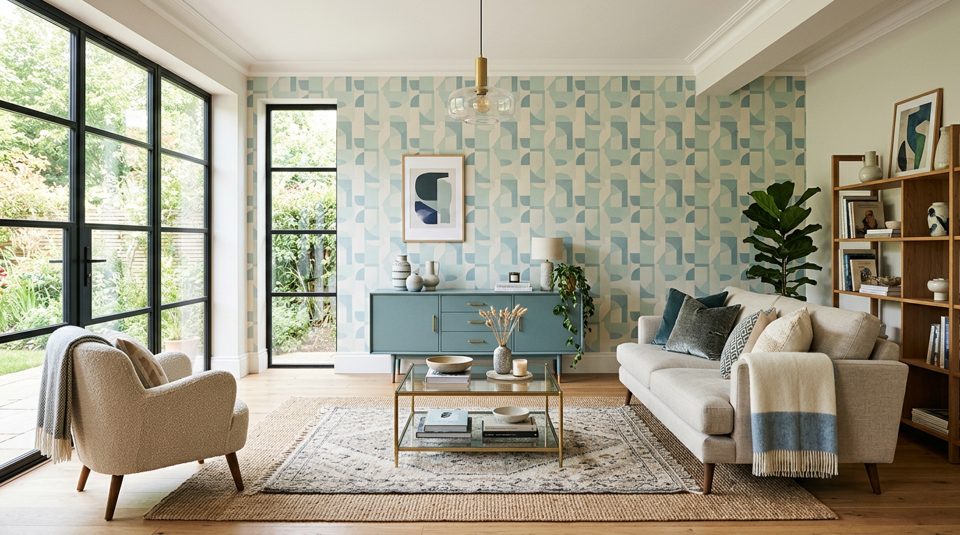 Retro wallpaper statement living room