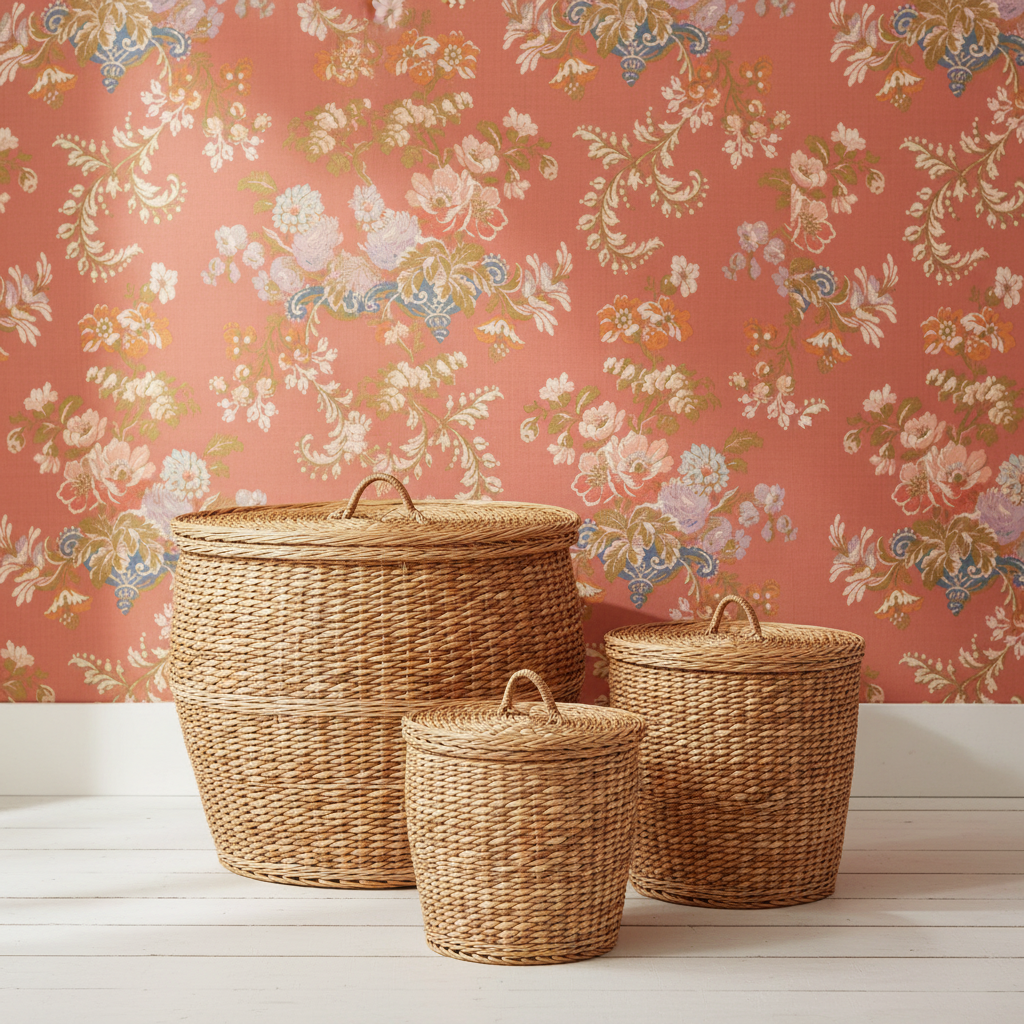 Storage baskets styled as décor