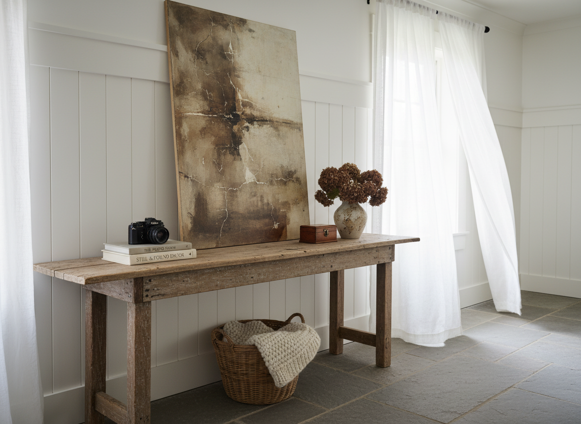 Often, it begins slowly, through the careful gathering of materials and objects that feel authentic and tactile. Natural elements introduce warmth and honesty to a home. Wood, with its visible grain and gentle imperfections, brings a sense of history and permanence, incorporating vintage finds also promotes sustainability and conscience. Stone adds quiet strength and grounding. Materials such as wool and leather offer softness and depth, their textures improving with age and use.